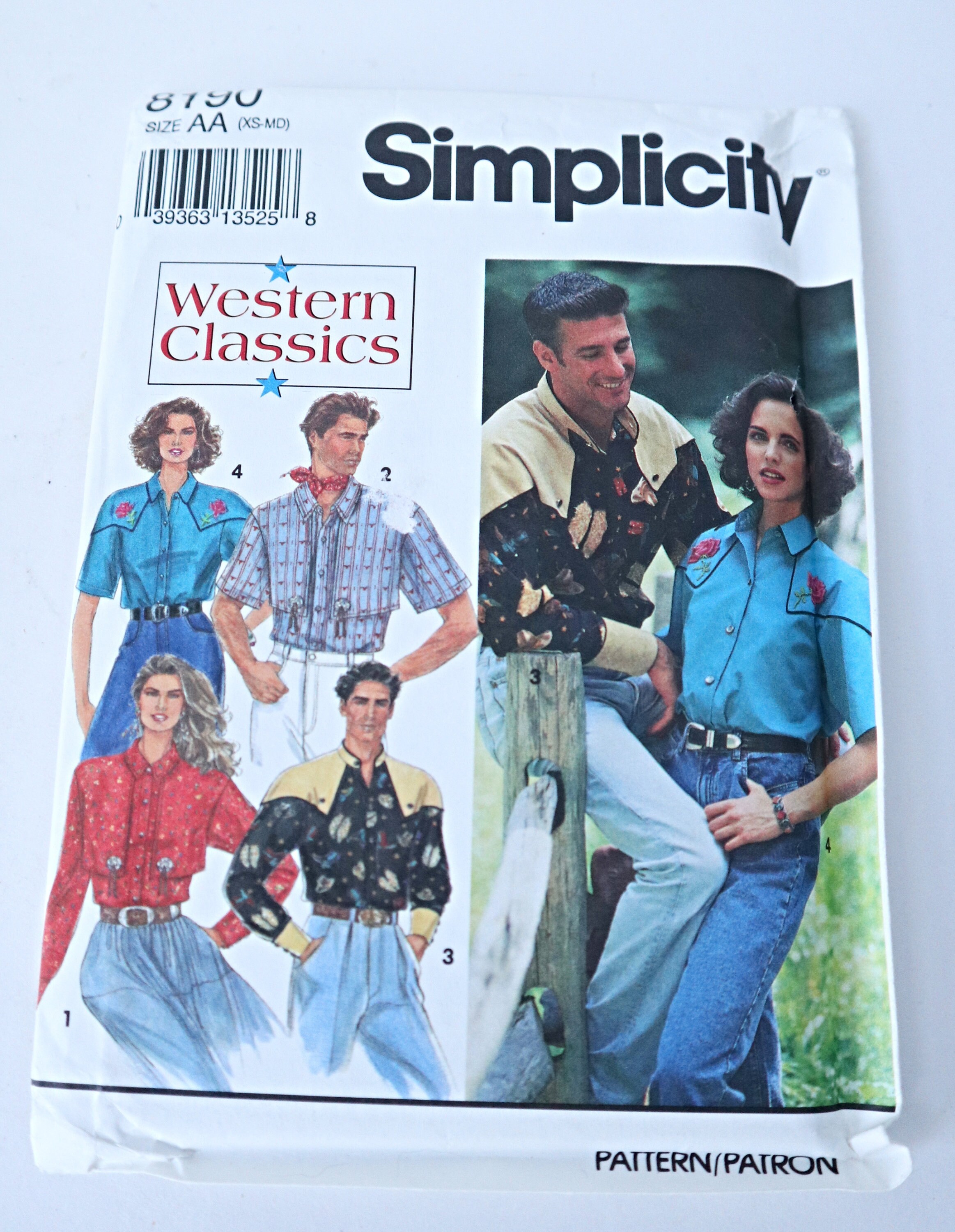 Mens Or Womens Western Shirt Pattern Simplicity 8262 Virtual Vintage